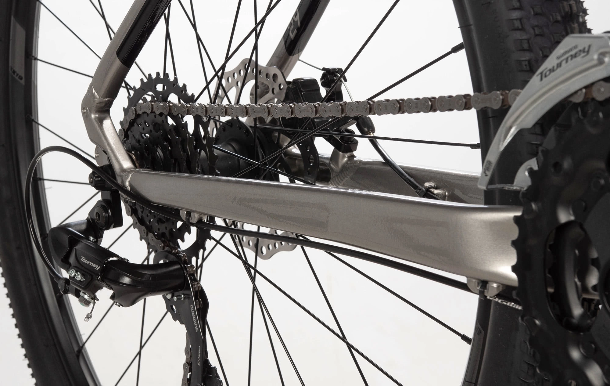 Complementing its 100mm of SR Suntour XCE28 fork travel is a solid, reliable Shimano Tourney EZ-Fire 21 speed drivetrain, so you can always find the right gear and spend less time at the shop. The mechanical disc brakes provide consistent stopping power on and off of the road.
