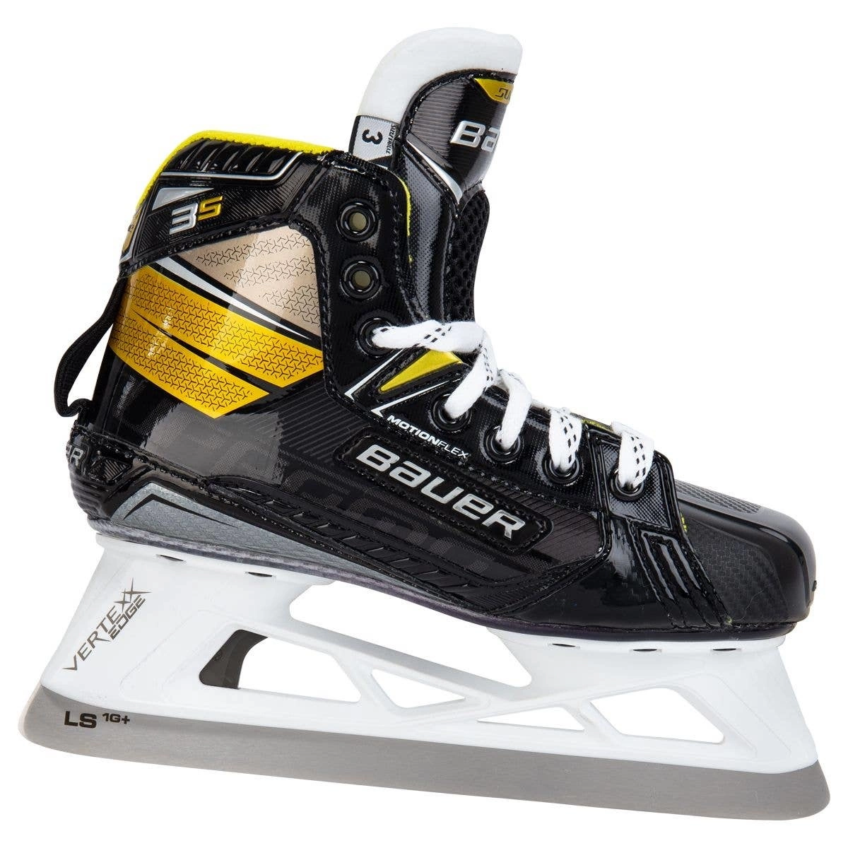 The Supreme 3S Goal Skate is for the rec goalie. The 3S replaces the S27 and has a new defined Supreme Fit, which provides a better fit for ankle wrap and heel depth. It uses a flex comp quarter and a flat collar for more support. We have Aerofoam plus in the ankles and a new toe cap for a better attack angle.