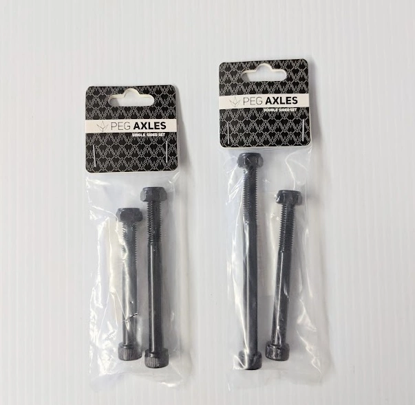 Double Sided – pack includes 1 x 80mm long axle, and 1 x 105mm long axles – both with lock nuts.