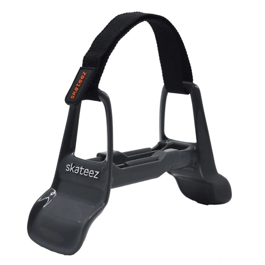 Skateez Skate Trainers are designed to provide support for beginning skaters like training wheels for skates. The arms are rigid enough to hold the skate vertical but also flexible enough to allow the skater to “edge” the blade to propel forward.