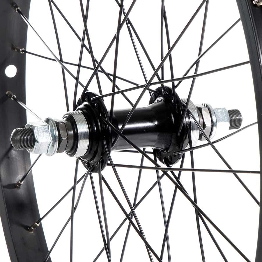 - Thread-on Freewheel type hub – Flip Flop – accepts 14t and 16+ Freewheels (freewheel not included)